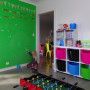 Another room in the Nettle house uses Resene SpaceCote Low Sheen tinted to Resene Wham as a feature wall. The durable low sheen finish of the paint means it can be used as a chalkboard. The other walls are Resene Alabaster.