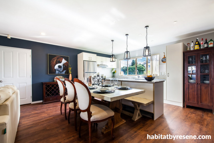 The couple has always loved dramatic dark walls and picked out Resene New Denim Blue for its dark charcoal look. Friends and family were a little skeptical, but, after seeing the outcome, they agree it hits just the right balance of bold and beautiful.
