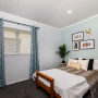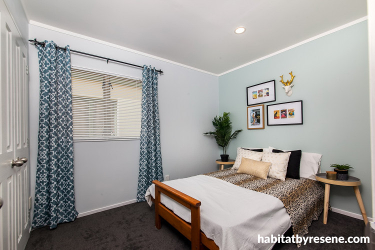 The guest bedroom gets less natural light, and so has a brighter colour scheme of Resene Nebula and Resene Eighth Friar Grey.