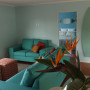 I was particularly happy with the lounge. I created subtle layers of blue and green in the room, which flows into the other living spaces.