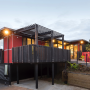 Rope has been wrapped around the external columns as a feature to add interest and texture, but also to soften the impact of the precise black steel rafters and corrugate cladding.