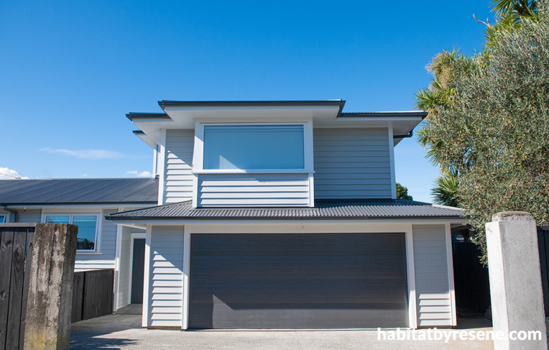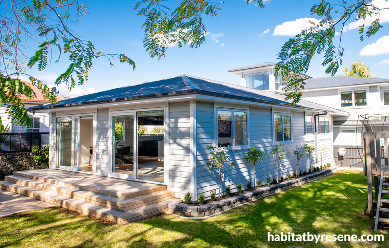 Old and new are blended seamlessly using the clever colour scheme. For the cladding they opted for timber weatherboards which are painted in Resene Silver Chalice.