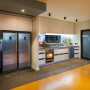I enjoy seeing the sun shine on the exterior of the house highlighting its colour and texture; it gives so much life to its simple geometric form. Too often, modern homes are restricted in their colour palettes and result in stark or grey tones. The internal colours work so well alongside the plywood panels and the cork tile and recycled rubber flooring.