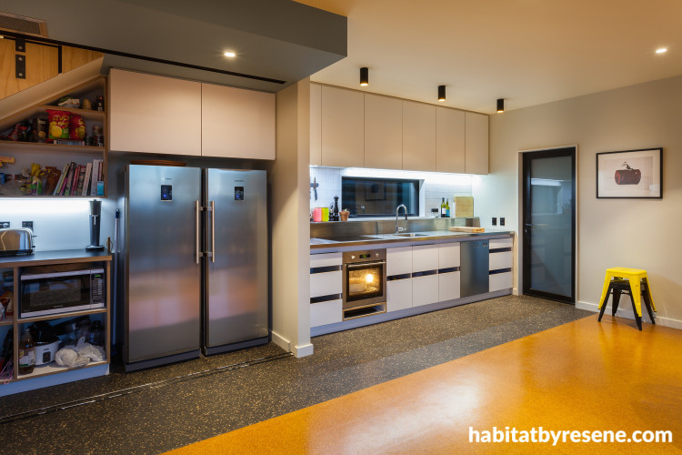 Only an architect would detail the stairwell so beautifully. Architect and owner Mike Callaghan chose plywood to line the stairs, and finished it in Resene Aquaclear.