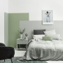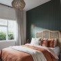 The restful and romantic bedroom (above) uses contrasting colours of silvery grey and green in Resene Silver Chalice, Resene Peace and Resene Helix to create a gentle restful space.