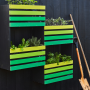 This vertical planter is painted in the vibrant greens Resene ASAP, Resene Left Field, Resene Wheel Of Fortune and Resene Limerick with side panels in Resene All Black. This looks striking against fences painted in dark wood stains such as Resene Woodsman Crowshead. Project by Andy Fraser, image by Bryce Carleton.