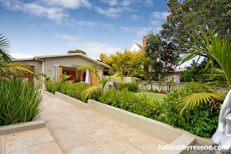 Why did you make these colour choices? We planted a tropical garden, so Resene Double Napa is a perfect foil to the lush green of palms. The interior colours work well with our timber furniture and stone flooring. Although Resene Canterbury Clay is a strong colour, it’s a lighter contrast with our dark woods, and we like its warmth.