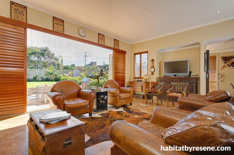 It has now been four years since Simon and Glynn moved into the house, originally charmed by its close proxitmity to the beach and classic bungalow style. These days it is a modern beauty, with a barbeque area and large bi-fold doors. But unlike some modern renovations, the old home has retained plenty of character, thanks largely to the couple's eclectic home decorating style. The house is filled with a mixture of antique and contemporary, wood and stainless steel, leather and marble. Somehow they all tie together to create a warm, stylish family home. "My design philosophy is simple," says Simon. "If you fill your home with the things you love, then the result will be a true reflection of who you are, and the rest is just window dressing!"