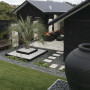 This garden designed by Sandra Batley of Flourish Gardens complements a house finished in Resene Waterborne Woodsman Cool Colour tinted to Hackett Black.