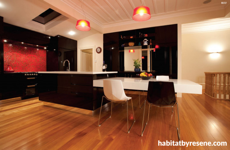 The ultimate practical black finish is Resene Blackboard Paint. Paint an entire wall in a child’s room, the back of a kitchen island bench, or frame up part of a wall as a more traditional blackboard – as with this kitchen designed by Rochelle Jackson of Kitchen Elements. Add another dimension by painting Resene Magnetic Magic underneath so that you can use it as a noticeboard as well. The kitchen cabinets here are Resene Half Black White.