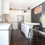 Gary Todd Architecture designed this kitchen in Resene Black as part of a renovation. It also uses Resene Black White for trims and Resene Double Pearl Lusta for walls.