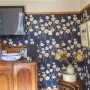 “The wallpaper in the hallway has a dark blue background that matches the sitting room’s curtains and wallpaper. I love it more each day.”