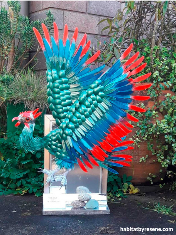 2020 entrant Edith from Mount Albert created this colourful bird out of plastic kinves, forks and spoons.