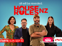 House Rules NZ streams first on ThreeNow from Sunday 10 September, with episodes uploaded at 12pm each day. It then airs on Three - three times a week; Sundays 7:00pm, and Mondays and Tuesdays at 7:30pm on Three.