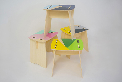 The design store is also known for its Yoobee Pews, slot-together bamboo stools with tops painted in triangles of various colours, using durable Resene Enamycryl.