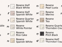 See the Resene Whites & Neutrals colour chart and The Range Whites & Neutrals to view these colours or try them out for yourself with a Resene testpot from your local Resene ColorShop or reseller.