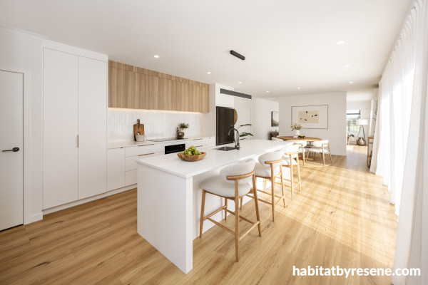Inside this beautiful home, Resene Wan White graces the walls, grounded by the warm timber flooring.