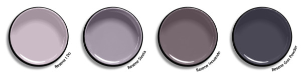 If you’re after purples that are a little more muted and easier on the eye, try Resene I Do, Siesta, Innuendo and Gun Powder: