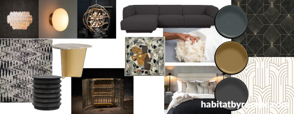 Use Resene Night Magic, a deep charcoal, to offset the luxurious furniture pieces. With Resene Forty Six bringing in the moody, glamorous depth and Resene Gold Dust delivering rich, vintage metallic luxury, you can create a timeless Art Deco interior that’s dramatic, indulgent and visually stunning. These hues pair seamlessly with elegant wallpapers like Resene Geonature Wallpaper Collection E366073 and Resene Elegance Wallpaper Collection M42102.