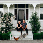 Ben and Helen’s 1910 villa has an elegant exterior with weatherboards painted in Resene Quarter Foggy Grey with fretwork, stairs and window trims in a crisp Resene Black White. The front door is striking in Resene Black.