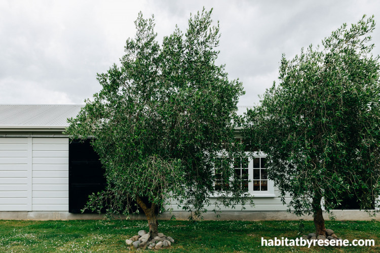 The villa and workshop are also home to the family vineyard and their extensive gardens. In 2019 Helen was named NZ Winemaker of the Year by Gourmet Traveller WINE magazine. The house exterior is painted in Resene Quarter Foggy Grey with double sash windows painted in Resene Black White.