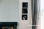 With lots of windows, French doors and sash windows, the couple chose interior colours to complement the villa’s abundance of light. A cosy fireplace sits opposite the Resene Lucky Break wall in the living room and is surrounded by a wall in Mason Cydon MC02 wallpaper from the Mason Handcrafted Wallpaper collection available from Resene ColorShops with muted colours in Resene Half Taupe Grey and Resene Double Stack.