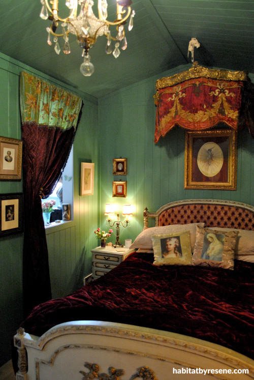 “I had been craving green for a while, so I knew I needed it. I took a snapshot of the room I loved and went into the Resene ColorShop and matched it. It turned out absolutely perfect. I feel I'm in an 18th Century boudoir,” says Claire.