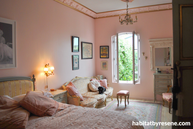 “The pink room was inspired from a chateau I had seen in France. The colour, Resene Cinderella, was the perfect fit. Fit for Cinderella herself - feminine and peaceful. I love pink with gilded furniture. You saw a lot of that in the 18th Century.”