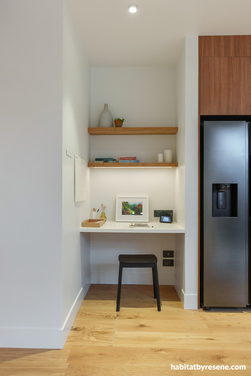Tim & Arthur from Three’s The Block NZ utilised their extra space next to the kitchen by creating a reading nook in Resene Black White.