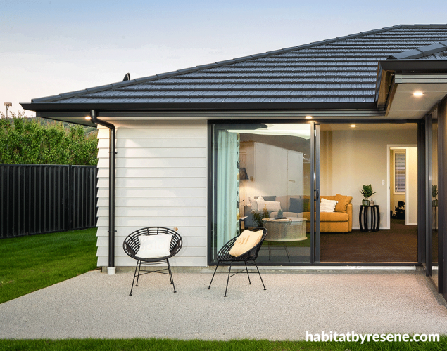 Resene Cloudy is featured on the home’s exterior. The outdoor area connects with the lounge painted in Resene Half Ash creating a relaxing space perfect for enjoying the beautiful Central Otago landscape.