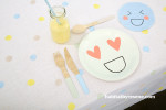Wall in Resene Splat, chair in Resene Ethereal, table cloth and other DIY crafts created with Resene Smiles, Resene Kandinsky, Resene Splat and Resene Ethereal testpots. Pegg stools from Freedom Furniture. Emoji-themed wall art, balloons, napkins, paper plates, loot-bag stickers and temporary tattoos from Meri Meri; Cake topper, pencils, OMG eraser set and lollies from Kmart.
