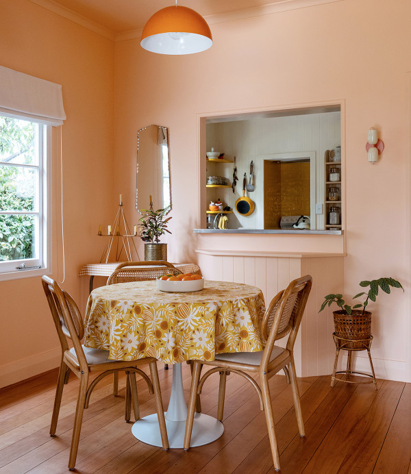 It’s that sense of meaning and continuity that gives this home its emotional weight. A pale blush returns to the dining room in Resene Romantic, wrapping not just the walls but the ceiling too, creating what Ingrid calls “a soft cocooning effect.”
