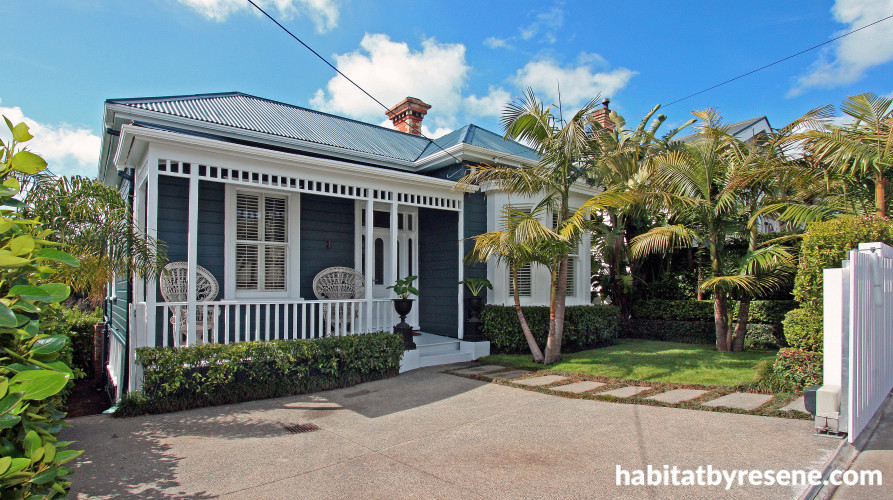 A shared background in design was definitely an advantage when Glenn Peters and Penny Hornsby took on the task of renovating a sleeping masterpiece in central Auckland. They’d already fine-tuned their skills at an Art Deco apartment and a previous house nearby, and they were looking forward to starting a fresh project – with a whole new palette of Resene colour, including Resene Double Balderdash for the exterior (above). The trims are in Resene Alabaster. And on the inside, they chose a wide-ranging palette of soft blues, greens and greys that work together for peace and harmony.