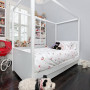 Little Violet’s bedroom with a four poster bed that’s just perfect for this particular princess, has walls in Resene Heather, a cool grey shade with just a hint of purple.