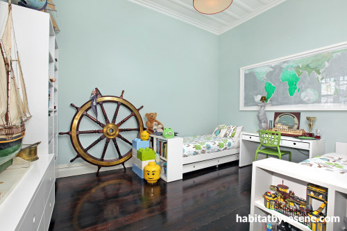 In Finn’s room at the front of the house Resene Periglacial Blue provides a perfect backdrop for his eclectic toy collection. Says Penny: “It’s got a little tinge of duck-egg so it’s certainly not harsh. Actually I think it’s the perfect boy colour!”