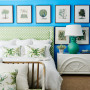 Try creating a vertical and horizontal axis from which all other frames will spread. This is a great hack of hanging frames that allows you to add more in the future and still keep the natural and organic flow going. Be sure to keep the distance between frames even and cosy. If in doubt, align the frames closer together to avoid your paintings looking haphazard in the space.