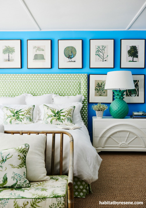 Interior designer Charlotte Coote created a lively nature-inspired room with crisp Resene Half Bianca on the ceiling that complemented the walls in Resene Malibu.