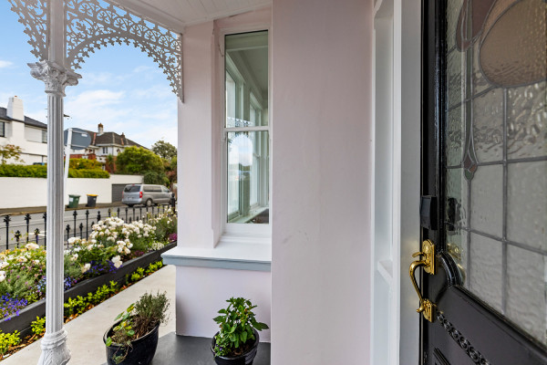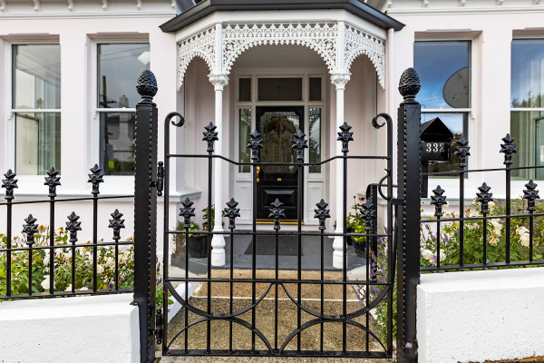 The exterior is now painted in a gentle tipple of pink, Resene Sauvignon, with trims and fretwork in Resene Alabaster and the front door in Resene Black.