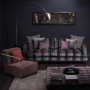 Jewel like tones make this bedroom a true boudoir. An old matchstick blind is upcycled as a bedhead, painted in Resene Smitten and set against a wall of sumptuous amethyst Resene Pukeko. The side table is painted in Resene Seeker and a cane birdcage is converted into a lamp and painted in Resene Flashback. Overblown and colourful flowers are in a vase painted in Resene Centre Stage and the finishing touch is a bed dressed in vibrant velvet throws and decadent linen (linen and cushions from Allium and Madder and Rouge).