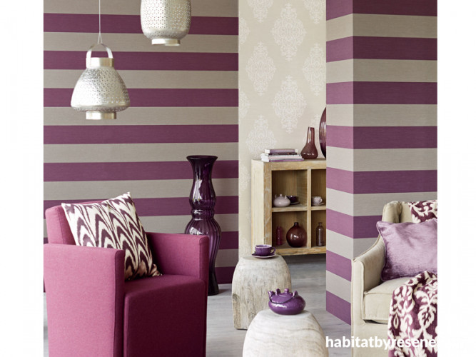 Cyclamen purples are growing in popularity and look great with warm neutrals. A great colour to add to this scheme would be Resene Centre Stage, and the floor look can be created with Resene Colorwood Whitewash. These wallpapers are new from Aspiring Walls, available at Resene, from the Charm collection from Eijffinger.