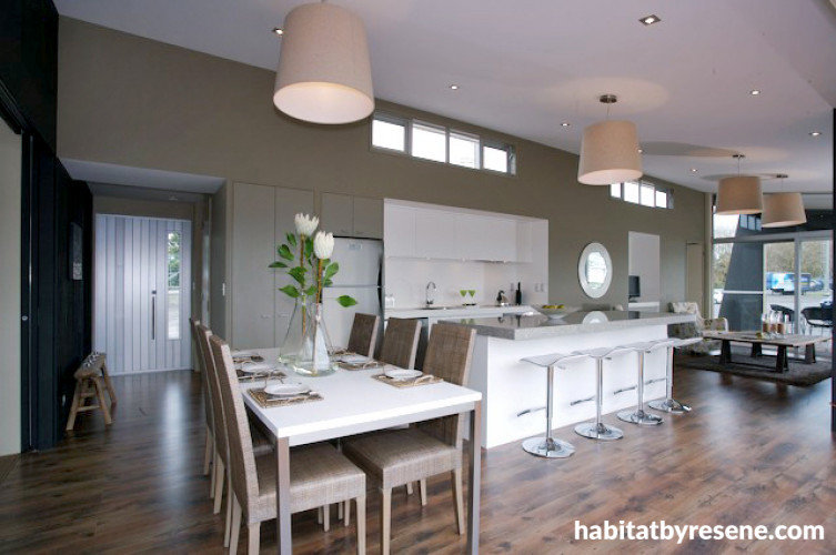 Which space in the house is your favourite? The clean white kitchen (Resene Quarter Thorndon Cream) set back into the deep beige wall (Resene Stonewall) really works well - it sets the kitchen apart from the living spaces in a very subtle, unobtrusive way.