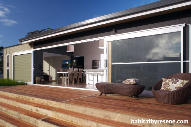 What colours did you use? We used light beige Resene Sisal as the main wall colour throughout the house, deep beige Resene Stonewall in the living area on the wall that has the kitchen, Resene Eighth Thorndon Cream in the kitchen and on the ceilings, and charcoal black Resene Bokara Grey on the feature wall in the master bedroom as well as on some of the interior doors and on the shadowclads. For the exterior, we used Resene Triple Grey Olive, Resene Eighth Thorndon Cream and Resene Bokara Grey. They are all earthy colours that can easily blend with a coastal or bush setting.