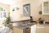 Kitchen and informal living room walls in Resene Sour Dough and ceiling and trims in Resene Villa White.
