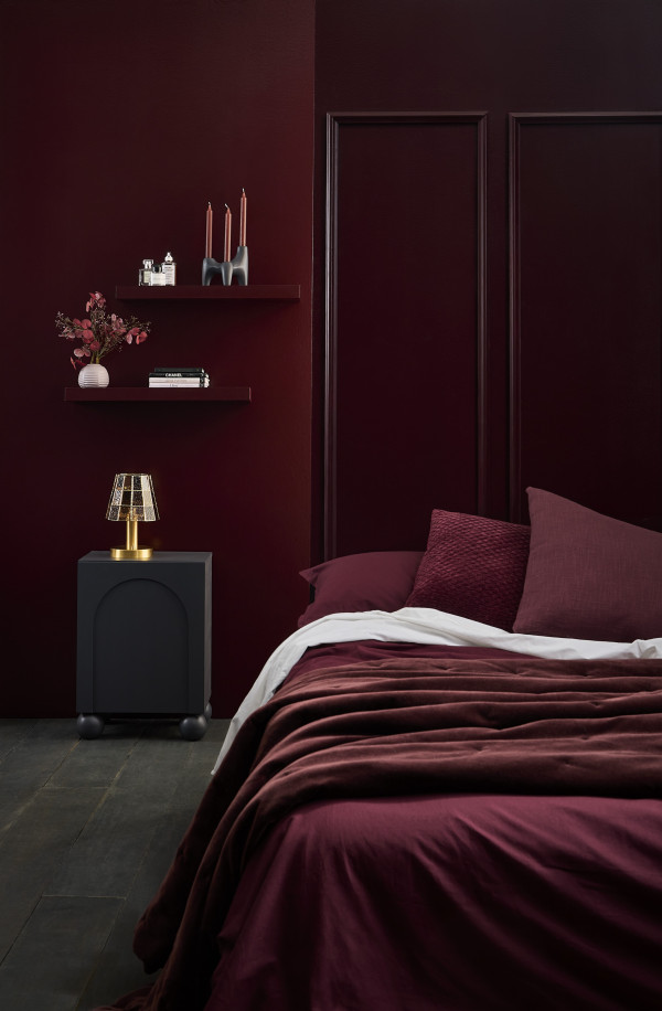 Amy suggests using these deep reds in a bedroom. “Using a deep burgundy such as Resene Spitfire with the colour drenching technique creates a cosy and intimate space,” she says. It’s proof that darker colours can feel calming rather than cold.