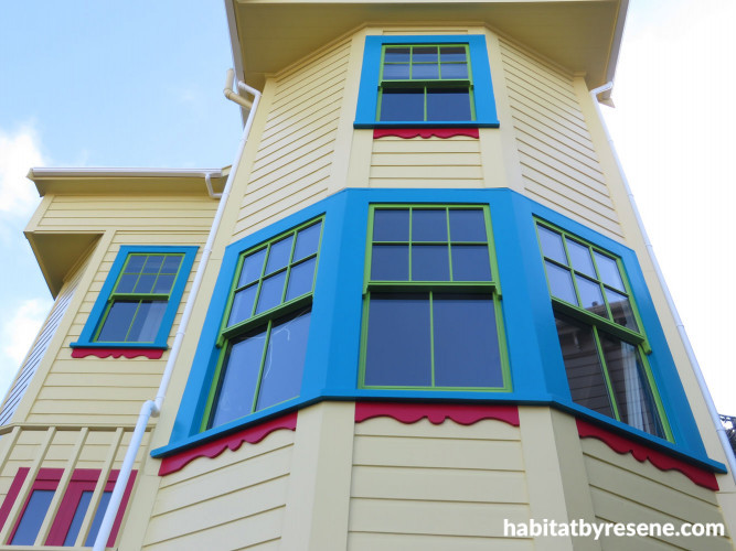 The Fairy Tale house owned by Wellington’s Daphne Carvalho won the Residential Exterior award with its fun mix of Resene Golden Sand, Resene Allports, Resene Limerick and Resene Poppy.