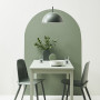 Create a sophisticated dining space in an open plan room by painting a coloured arch, separating the area. Draw the eye to your dining nook and allow it to feel calmer with a tone like Resene HalfRivergum, a soothing grey-green. Colour theory suggests shades of green are grounding and create a sense of freshness, the perfect setting for serving up a meal. Forest tones soften harsher features too like tables and can make a dining space more welcoming. Alternatively, you could explore vibrant colours in your kitchen if it needs brightening and paint an arch as an impromptu backsplash.