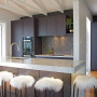 The grey tones in the splashback and marble benchtop reflect the darker cabinetry painted in Resene Fuscous Grey, as well as the lighter walls painted in Resene Sea Fog.