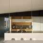 The central living area is the heart of the home, and their favourite space, with furniture mostly sourced from Kartell through Backhouse Interiors nd a coffee table from Portfolio. On sunny days, the couple open up the doors and move between sun and shade, warm and cool – states that are reflected in the warm and cool tones of the colour scheme – stone greys, sand-coloured plywood, and blues that echo the sea and sky.