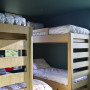 The remainder of the house is accessed through a darkened hallway. As you turn the corner, the rest of the house is revealed creating a sense of surprise that the house extends further. The painted ceilings create an immersive feeling, almost like being undersea, and the bunks were designed by Tim Lovell of Parsonson Architects.