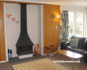 Timber paneling, a painted brick niche (complete with flying ducks) and a hooded firebox – the 1970s origins of the house couldn’t be more obvious.